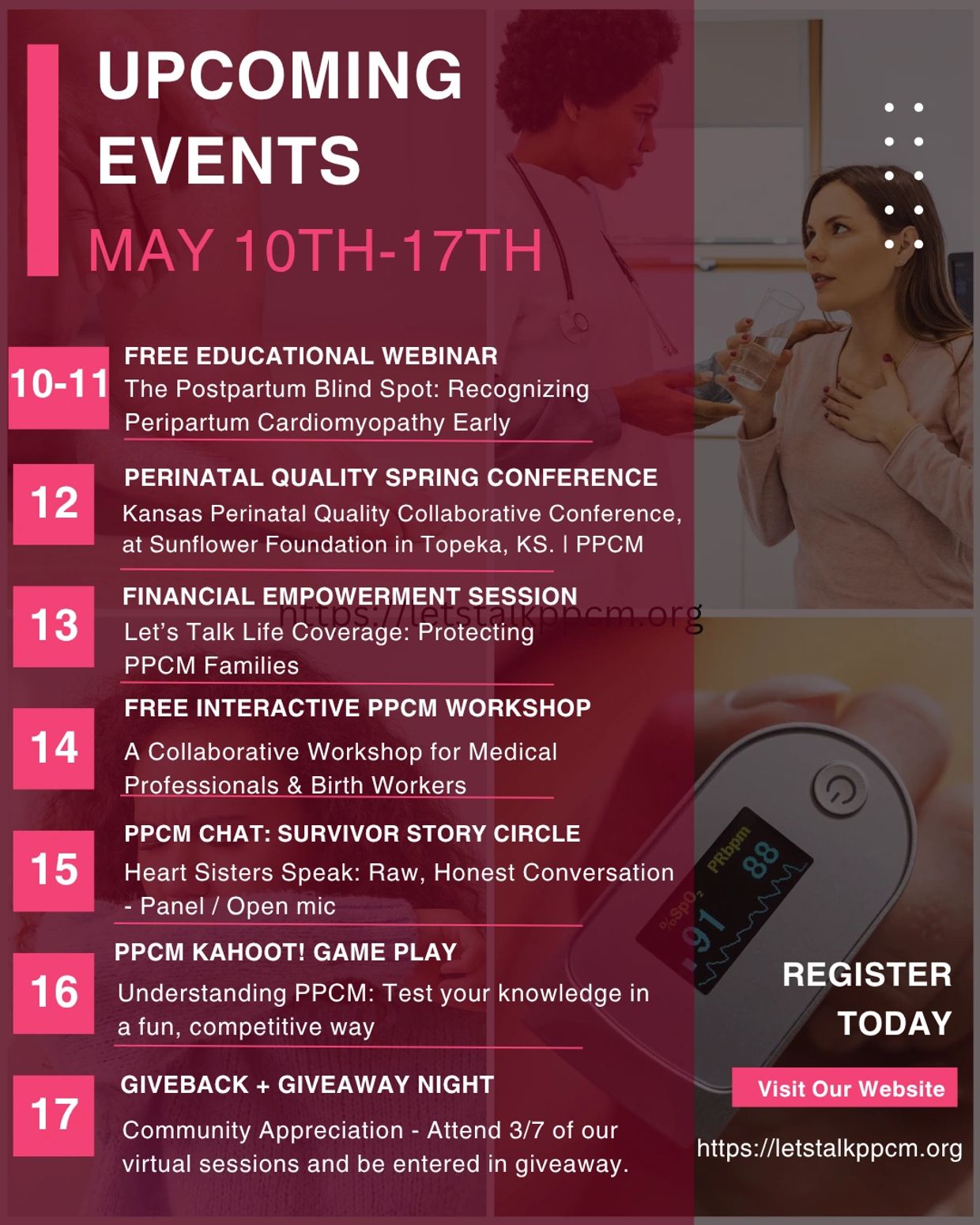 Join us May 10–17 for a powerful week of education, support, and storytelling for women and families impacted by Peripartum Cardiomyopathy (PPCM).